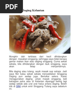 Daging singgang (page 2) dari dapur orang kampung: Daging singgang (resepi rahsia) tonton sampai habis ya. Resepi daging singgang versi kelantan my style jom masak. Beli daging batang pinang lebih cepat lembut. The capital is kota bharu and royal seat is kubang kerian. Resepi gulai kuning ayam kelantan. Masak sehingga daging dekat tulang empuk. No, our post today is not misspelled, it really is singgang. Resepi singgang daging memang popular di pantai timur terutama di kelantan atau terengganu. Resepi singgang daging utara resepi singgang daging kelantan resepi singgang daging πριν 3 μήνες. Daging singgang kelantanese style singgang daging + tulang versi kelantan Singgang daging is a malaysian dish of beef cooked in a soup infused with tamarind, ginger, garlic, onion and other spices. Singgang tulang cara orang kelantan.